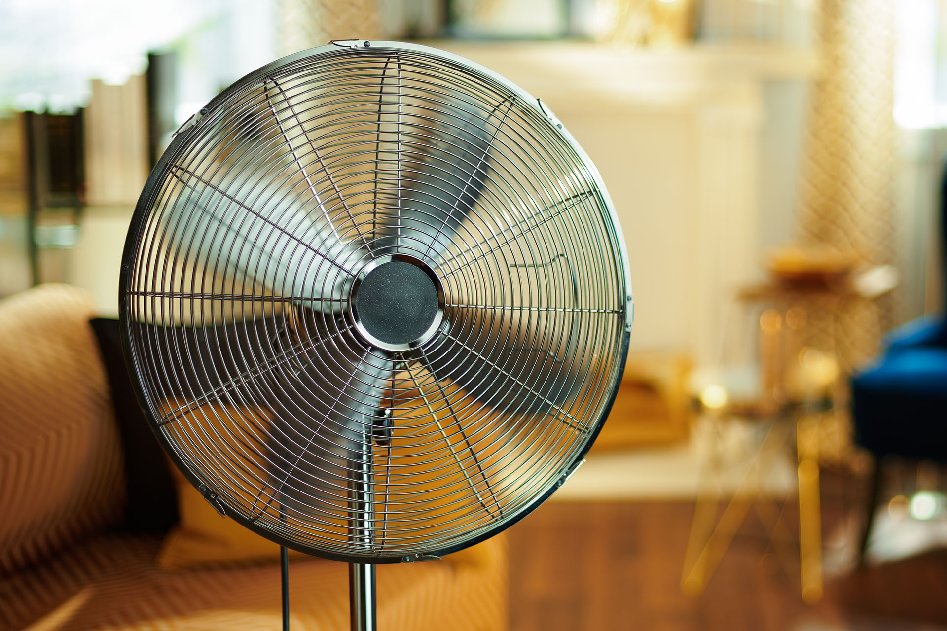 Ein Venti-lator macht Wind im Zimmer.